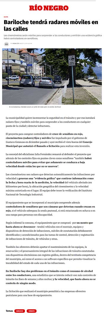 En Bariloche hay dos problemas en el tránsito como el consumo de alcohol entre los conductores, una estadística que se intenta reducir con más controles de tránsito los fines de semana y altas multas; y la velocidad, que hasta ahora no se controla de ningún modo.