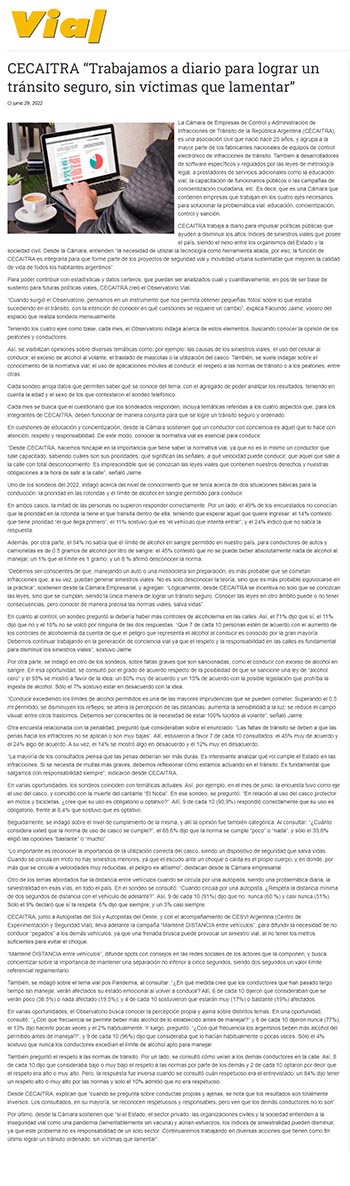 “La mayoría de los consultados piensa que las penas deberían ser más duras. Es interesante analizar qué rol cumple el Estado en las infracciones. Si se necesita de multas más graves, debemos reflexionar cómo estamos actuando en el tránsito. Es fundamental que salgamos con responsabilidad siempre”, indicaron desde CECAITRA.