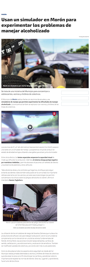 Morón usa simuladores para alertar del peligro del alcohol al volante La utilización de los simuladores de riesgo de Cecaitra (Cámara que nuclea a los productores de software vial) para trabajar la educación vial en la comunidad se complementa con la intervención en una de las arterias fundamentales del Partido. En Eva Perón, las acciones incluirán tareas de bacheo, cambios de sentido, señalización, y acondicionamiento y reubicación de semáforos. También se modificarán paradas de colectivos y se construirán más cruces peatonales.