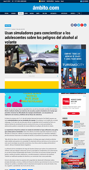 En Morón los alumnos de 5° y 6° año del Instituto Nacional de Aviación Civil (INAC) pasaron una tarde entreteniéndose con un simulador de manejo. Sin embargo, no se trataba de un simple videojuego. En el marco de una obra para reforzar la seguridad vial en la avenida Eva Perón, se realizan charlas de concietización para los vecinos de la zona y, en esta oportunidad, los adolescentes pudieron comprender de manera didáctica los peligros del alcohol al volante.