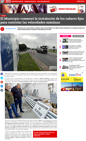 Esta semana comenzó la instalación de los radares fijos, que controlarán las velocidades máximas en las “zonas calientes” de Mar del Plata, donde se registran la mayor cantidad de siniestros viales. En esa línea, el subsecretario de Transporte y Tránsito, Claudio Cambareri, informó en conferencia de prensa que “en la primera etapa se van a colocar estos radares fijos para controlar la velocidad, el cruce de semáforo en rojo e invasión de senda peatonal”.