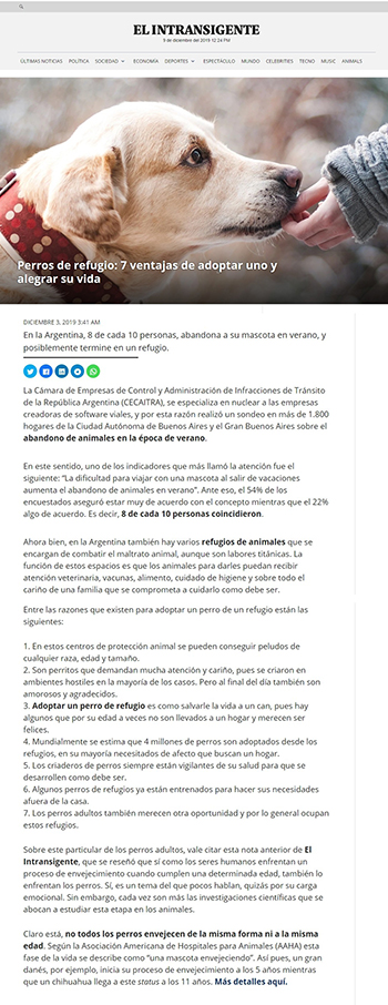 La Cámara de Empresas de Control y Administración de Infracciones de Tránsito de la República Argentina (CECAITRA), se especializa en nuclear a las empresas creadoras de software viales, y por esta razón realizó un sondeo en más de 1.800 hogares de la Ciudad Autónoma de Buenos Aires y el Gran Buenos Aires sobre el abandono de animales en la época de verano.