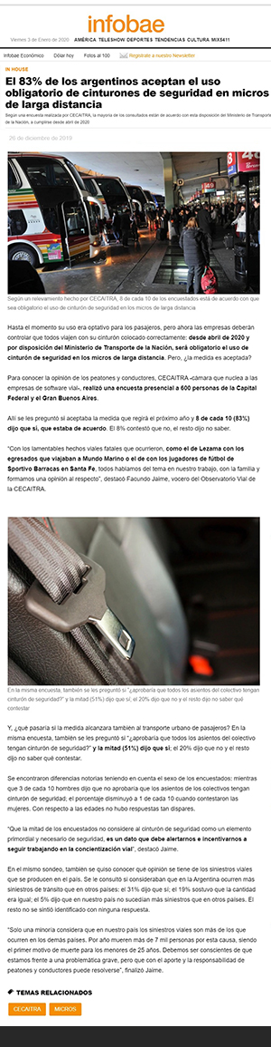 El 83% de los argentinos aceptan el uso obligatorio de cinturones de seguridad en micros de larga distancia