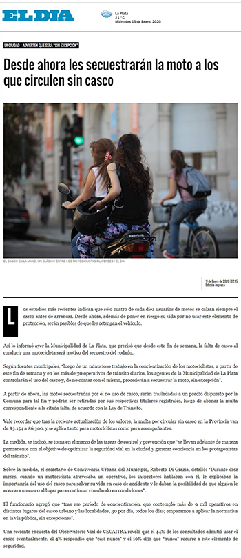Desde ahora les secuestrarán la moto a los que circulen sin casco