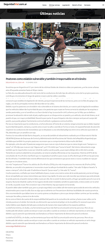 Frente a la nota editorial del diario chaqueño, se recuerda también el relevamiento realizado por el Observatorio Vial de CECAITRA (Cámara de Empresas de Control y Administración de Infracciones de Tránsito de la República Argentina) que señalaba que también los propios peatones reconocen que su comportamiento dista mucho del ideal.