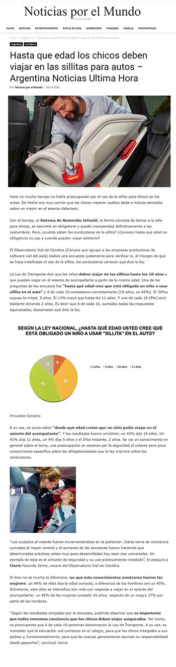El Observatorio Vial de Cecaitra (Cámara que agrupa a las empresas productoras de software vial del país) realizó una encuesta justamente para verificar si, al margen de que se haya masificado el uso de la sillita, los conductores conocen qué dice la ley.